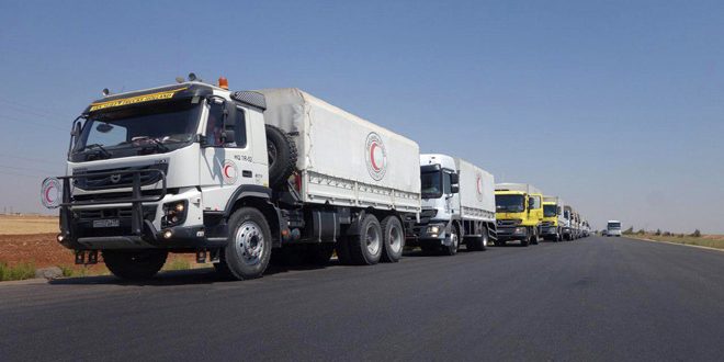 أوصل فرع الهلال الأحمر العربي السوري بدرعا اليوم دفعة جديدة من المساعدات الغذائية إلى الأهالي في مدينة بصرى الشام وبلدة النعيمة بريف درعا.