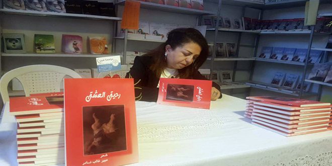 ضمن فعاليات الدورة الـ31 من معرض الكتاب في مكتبة الأسد الوطنية وقعت الشاعرة عبير غالب نادر مجموعتها (رحيق العشق).