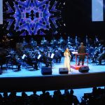 وهي تغني بطريقة صحيحة وأردنا في هذه الأمسية أن تكون لها خصوصية من خلال دمج الأوركسترا السيمفونية مع باند جاز والعزف سوية بالإضافة إلى وجود رؤية بصرية مصاحبة للأداء الموسيقي والغنائي”.