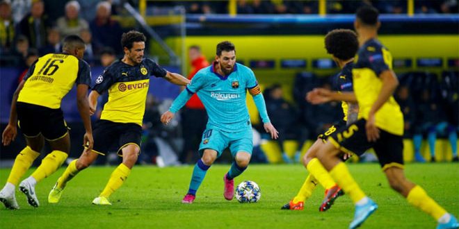 سدد بروسيا دورتموند في إطار المرمى وأهدر ركلة جزاء خلال التعادل دون أهداف مع ضيفه برشلونة في افتتاح جولات المجموعة السادسة بدوري أبطال أوروبا لكرة القدم في أول ظهور لليونيل ميسي هذا الموسم مع بطل إسبانيا.