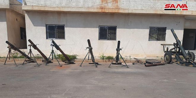 عثرت الجهات المختصة بالتعاون مع وحدات من الجيش العربي السوري خلال أعمال تمشيط القرى والبلدات التي تم تحريرها من الإرهاب مؤخرا في ريف حماة الشمالي على مدافع وذخائر من مخلفات التنظيمات الإرهابية المندحرة من المنطقة.