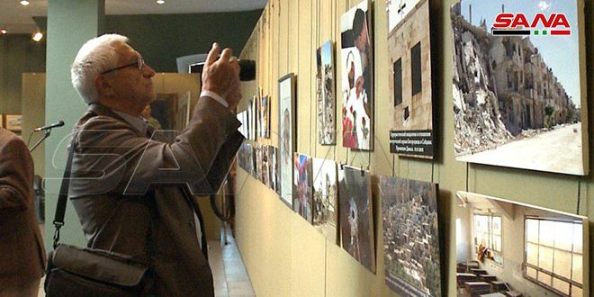وتضمن المعرض الذي نظم بالإشتراك مع الإدارة الرئاسية في “جمهورية دونيتسك الشعبية” والإدارة الرئاسية في “جمهورية لوغانسك الشعبية” ومؤسسة “روسسار” لوحات فنية لرسامين وأطفال روس وصورا فوتوغرافية قدمتها وكالة سانا توثق حجم الدمار والخراب الذي ألحقته التنظيمات الإرهابية بالمشافي والمدارس والبنية التحتية الاقتصادية في سورية كما تصور الدمار والضحايا والمعاناة جراء الحرب في جمهوريتي دونيتسك ولوغانسك الشعبيتين.