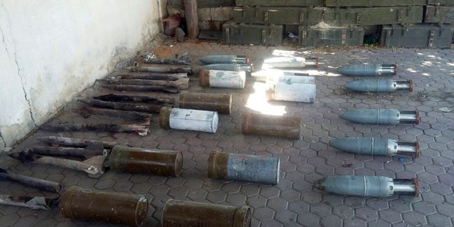 وذكر مصدر ميداني في تصريح لمراسل سانا في حماة أن الجهات المختصة عثرت خلال متابعتها أعمال تمشيط بلدة الكركات على “صواريخ صناعة يدوية وقذائف دبابة وحشوات لها في حين ضبطت في قرية التويني صناديق ذخيرة تحوي كميات كبيرة من طلقات الرشاشات من أعيرة 23 و57 و62ر7 وقذائف أر بي جي وحشواتها”.
