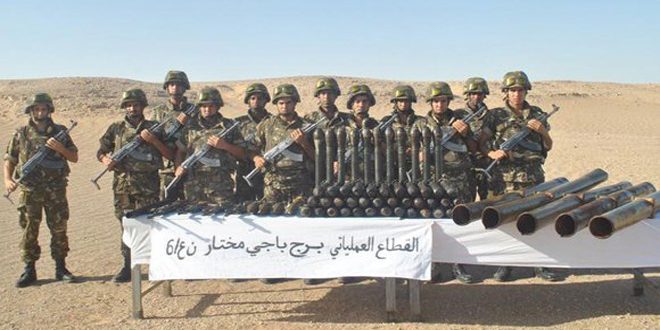 ونقلت وكالة الأنباء الجزائرية عن الوزارة قولها في بيان اليوم إن مفارز تابعة للجيش الوطني الشعبي كشفت ودمرت خلال عملية بحث وتمشيط قرب الشريط الحدودي في تمنراست وجبل الرفعة في ولاية باتنة وكرين للإرهابيين وضبطت بداخلهما كمية كبيرة من الأسلحة والذخائر مشيرة إلى أن هاتين العمليتين تاتيان في إطار مكافحة الإرهاب.