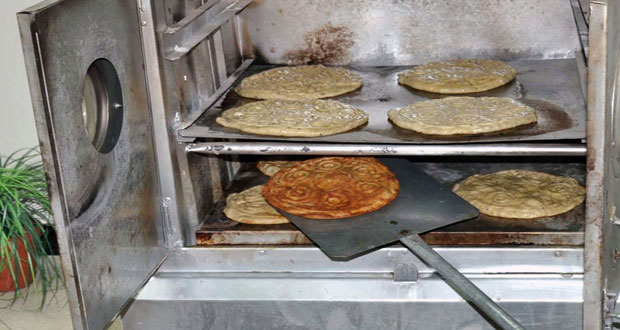 أما فيما يخص خبز القالب فتبين العلي أن العجين المخمر يمد على قالب خشبي مدهون بالزيت وعليه رسومات معينة تعطي الخبز شكلا مميزا ثم يوضع بالفرن حتى ياخذ الدرجة المرغوب بها وتحميره قليلا بالطبقة العليا من الفرن الحوراني حسب الرغبة والتناول ساخنا موضحة أنه يدخل في تحضير خبز القالب الطحين والخميرة والملح والقزحة وبعض المواد الأخرى كما تستعمل بعض العائلات الحليب للمحافظة على طراوة الخبز وجودته لفترة طويلة.