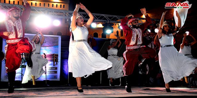فرقة أوغاريت قدمت بدورها عرضا فنيا من الرقص الفلكلوري والتراثي بعنوان “حكاية انتصار” نقلت من خلاله عبر 40 دقيقة تقريبا تراث جميع المحافظات مع أغان اختصت فيها كل منها كرسالة سلام من سورية إلى العالم.