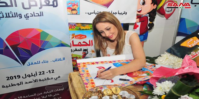 وفي جناح دار الحافظ للطباعة والنشر وقعت الأديبة الشابة رنيم الباشا قصة الأطفال “لا تيئس” التي تتجه لزرع الشجاعة وعدم اليأس عبر حكاية مجموعة من الصغار يسعون لبناء قصر من الرمل على شاطئ البحر ولكن الأمواج تهدمه غير أن الصغار لا يتركون اليأس يتسلل إليهم ويستمرون في محاولاتهم كما رافق القصة رسوم فنية معبرة للفنانة نسرين خربوطلي بأسلوب بين التعبيري والتجريدي.