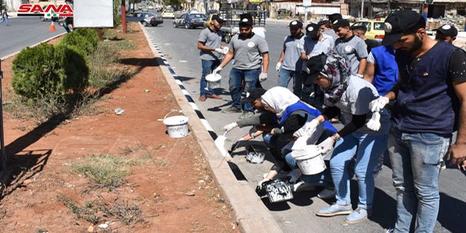 حماة-سانا ينفذ مجلس مدينة حماة بالتعاون مع فعاليات أهلية أعمال تأهيل دوار الصناعة بمدخل المدينة …