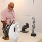 المعرض ضم أكثر من 80 منحوتة بخامات الجبصين والريزين بعد معالجتها وتلوينها لتأخذ إحسان البرونز أو الرخام او الحجر البازلتي وغيرها من الخامات وبمواضيع متنوعة وأحجام تراوحت بين الصغير والمتوسط.