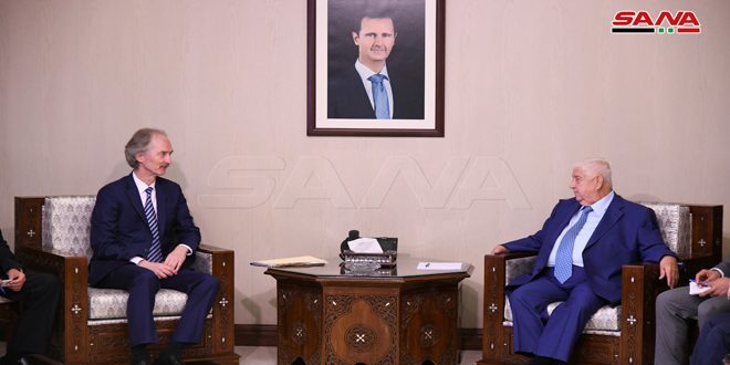 استقبل نائب رئيس مجلس الوزراء وزير الخارجية والمغتربين وليد المعلم صباح اليوم غير بيدرسون المبعوث الخاص للأمين العام للأمم المتحدة إلى سورية والوفد المرافق له.
