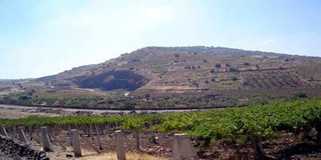 وتغطي سفوح التل الأشجار الحراجية من السنديان والبلوط إضافة إلى بساتين التفاح وكروم العنب التي تشكل مع تربته الطينية الحمراء وصخوره البركانية السوداء لوحة فريدة من السحر والجمال.