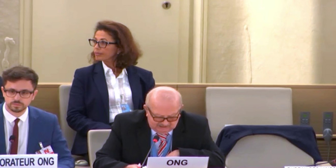 وأوضح خوري في بيان ألقاه اليوم خلال جلسة حول حالة حقوق الإنسان في فلسطين والأراضي العربية المحتلة الأخرى في الدورة الـ 42 لمجلس حقوق الإنسان أن هذا الإعلان يتعارض مع قرارات الأمم المتحدة ذات الصلة بالأراضي الفلسطينية والعربية المحتلة وخاصة قرارات 242 و338 والقرار 497 المتعلق بالجولان السوري المحتل.