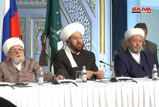 وقال الشيخ عين الدين “إننا كرجال دين نعمل بالاشتراك مع القيادة الروسية والأجهزة الأمنية على مكافحة الإرهاب ولقد أحرزنا نجاحات معينة في هذا المجال” منوها بحضور الوفد السوري ممثلا بمفتي الجمهورية سماحة الشيخ أحمد بدر الدين حسون في المؤتمر مؤكدا أنه لا يمكن الانتصار على شر الإرهاب الدولي إلا بالجهود المشتركة.