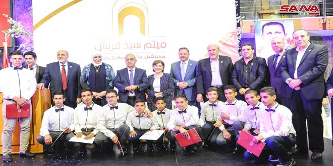 وتخلل الحفل الذي حضرته وزيرة الشؤون الاجتماعية والعمل ريمه قادري والمستشارة السياسية والاعلامية في رئاسة الجمهورية الدكتورة بثينة شعبان عرض فيلم عن نشاطات الميتم بعنوان “مستقبل مشرق وتاريخ يشهد”.