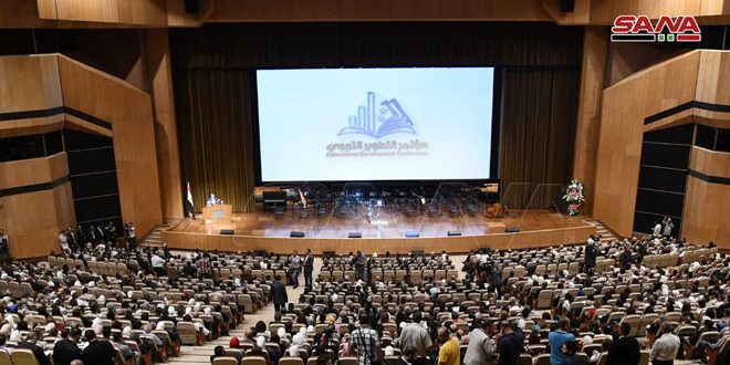 برعاية السيد الرئيس بشار الأسد انطلقت اليوم فعاليات مؤتمر التطوير التربوي الذي تقيمه وزارة التربية بالتعاون مع وزارة التعليم العالي بعنوان (رؤية تربوية مستقبلية لتعزيز بناء الإنسان والوطن) في قصر المؤتمرات بدمشق ويستمر حتى الثامن والعشرين من الشهر الجاري.