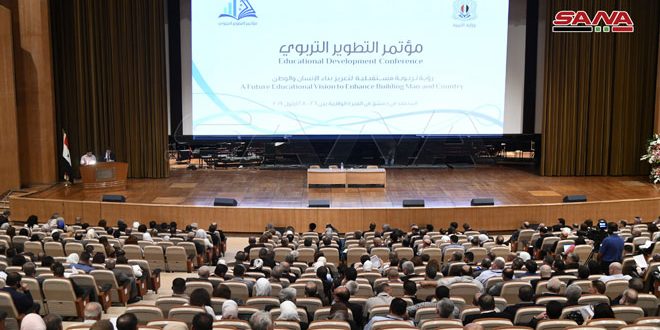 وكانت فعاليات مؤتمر التطوير التربوي الذي تقيمه وزارة التربية بالتعاون مع وزارة التعليم العالي انطلقت صباح اليوم في قصر المؤتمرات بدمشق تحت عنوان رؤءية تربوية مستقبلية لتعزيز بناء الإنسان والوطن.
