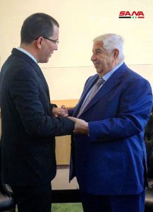 حضر اللقاءات الدكتور فيصل المقداد نائب وزير الخارجية والمغتربين والدكتور بشار الجعفري مندوب سورية الدائم لدى الأمم المتحدة ومحمد العمراني مدير إدارة المكتب الخاص في وزارة الخارجية والمغتربين.