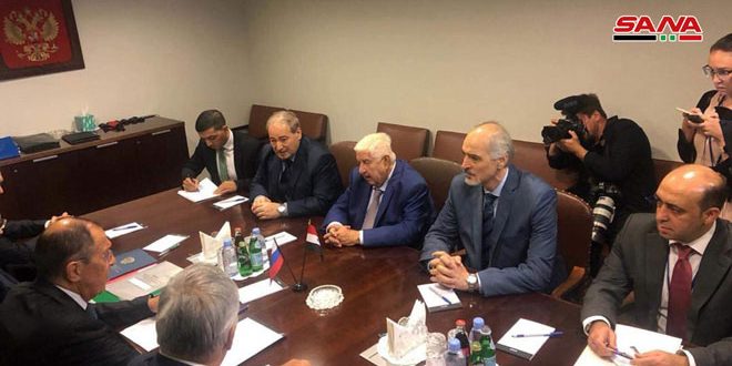 والتقى الوزير المعلم وزير الخارجية الروسي سيرغي لافروف وبحث معه سبل تعزيز العلاقات الاستراتيجية التي تربط البلدين الصديقين وأهمية التنسيق المستمر بينهما في كل القضايا والملفات إضافة إلى التطورات ذات الصلة بالوضع في سورية وخصوصاً لجنة مناقشة الدستور وأهمية الاستمرار في مكافحة الإرهاب وصولا إلى تحرير جميع الأراضي السورية وخروج القوات الأجنبية الموجودة في سورية بشكل غير شرعي.