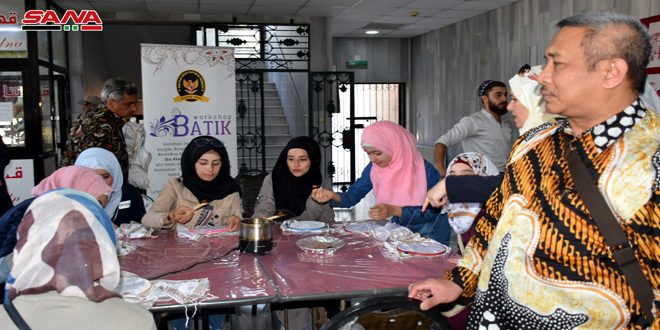 أقامت السفارة الأندونيسية في سورية بالتعاون مع مجلس مدينة حماة اليوم ورشة فن الباتيك “الرسم على القماش” كتراث اندونيسي شهير بإشراف فيني عفواني علم شاه الخبيرة من شركة بيت الباتيك الأندونيسي وذلك على مدرج مجلس مدينة حماة.