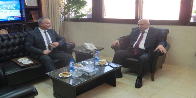 بحث مدير عام المركز العربي لدراسات المناطق الجافة والأراضي القاحلة “أكساد” الدكتور رفيق علي صالح اليوم مع القائم بأعمال السفارة التونسية بدمشق إبراهيم الفواري سبل تطوير التعاون بين الجانبين في مجال البحث العلمي الزراعي.
