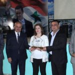 الفنان علي بهاء معلا من طرطوس تحدث عن اختياره سورية المنتصرة عنوانا لمنحوتته معبرا فيها عن الأم السورية التي أنجبت وقدمت وضحت واليوم تحمل راية النصر وهي تعانق الشمس لأن المرأة في سورية كانت التاريخ الكوني بكل تفاصيله.
