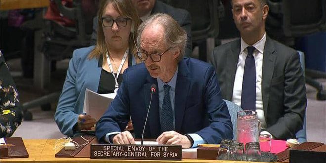 جدد المبعوث الخاص للأمين العام للأمم المتحدة إلى سورية غير بيدرسون التأكيد على ضرورة احترام سيادة سورية ووحدتها وسلامة أراضيها مشددا على أنه لا حل عسكريا للأزمة فيها وأن السوريين هم من سيعدون الدستور.
