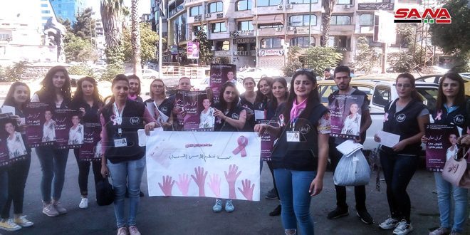 نظم مركز الشباب التابع لفرع جمعية تنظيم الأسرة السورية في السويداء اليوم مسيرا من ساحة تشرين وصولا إلى ساحة السير بمركز المحافظة بمناسبة إطلاق الحملة الوطنية للكشف المبكر عن سرطان الثدي.