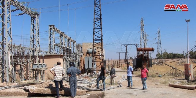 وأوضح مدير عام شركة الكهرباء المهندس غسان الزامل في تصريح لمراسل سانا أن ورشات الكهرباء من خلال عمل متواصل استمر لعدة أيام استطاعت إعادة تأهيل خلايا المحطة وبالتالي وضع ثمانية مخارج بالخدمة وإعادة التيار الكهربائي.