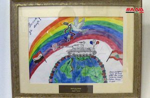 وتضمن المعرض الذي ينظم بالإشتراك مع الإدارة الرئاسية في جمهورية دونيتسك الشعبية والإدارة الرئاسية في جمهورية لوغانسك الشعبية ومؤسسة روسسار في جزئه الأول لوحات فنية لرسامين وأطفال روس وصورا فوتوغرافية قدمتها وكالة سانا توثق حجم الدمار والخراب الذي ألحقته التنظيمات الإرهابية بالمشافي والمدارس والبنية التحتية الاقتصادية في سورية كما تصور الدمار والضحايا والمعاناة جراء الحرب في جمهوريتي دونيتسك ولوغانسك الشعبيتين.