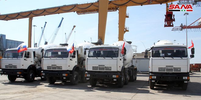 معاون وزير الأشغال العامة والإسكان محمد سيف الدين بين في تصريح للصحفيين في مرفأ طرطوس أن المعدات جزء من الاتفاق المبرم مع الشركة الروسية لتوريد 144 آلية والتي سيتم استلامها خلال عام من تاريخ العقد لافتا إلى حاجة الشركات السورية لهذه المعدات من أجل المشاركة في إعادة الإعمار.