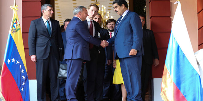 من جانبه قال بوريسوف “زيارتي إلى كراكاس تحمل طابعا تقنيا ناقشنا خلالها مسائل محددة لتعزيز التبادل التجاري وإنعاش الاقتصاد الفنزويلي”.