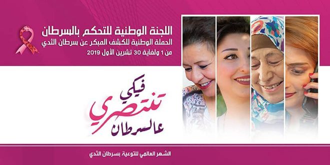 وكانت الحملة الوطنية انطلقت بداية تشرين الأول الشهر العالمي للتوعية بسرطان الثدي وتستمر حتى نهايته عبر مراكز صحية ومجتمعية تنفذ جلسات توعية وفحوصا طبية تشمل تصوير ماموغرام ثدي للنساء فوق سن الأربعين وايكو للأصغر سنا مع متابعة السيدات في حال الشك بالإصابة وتحويلهن إلى المشافي.