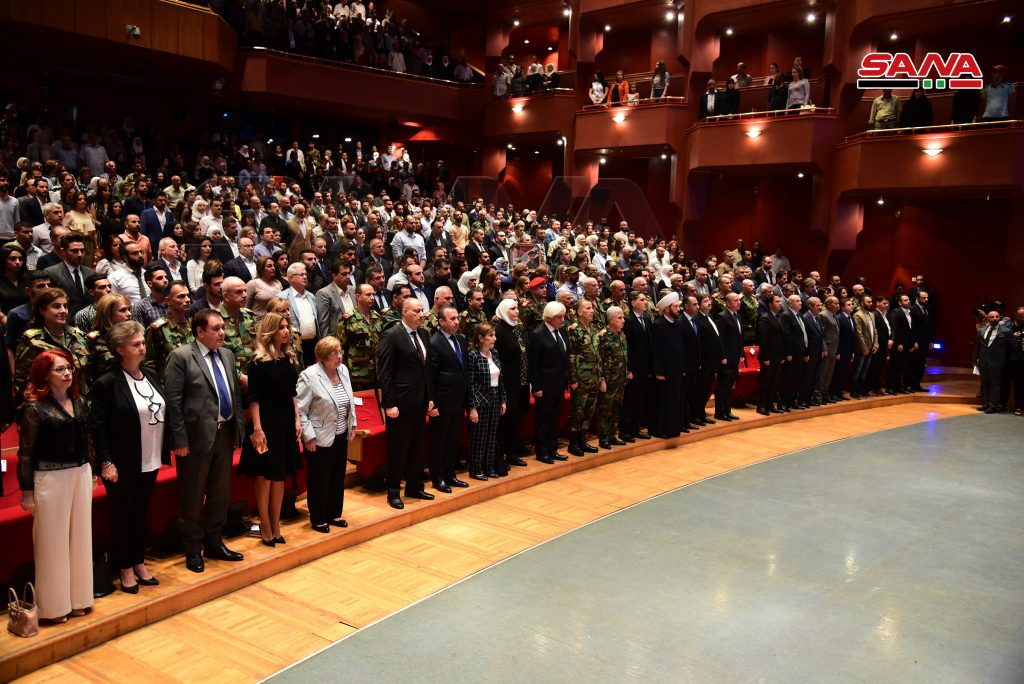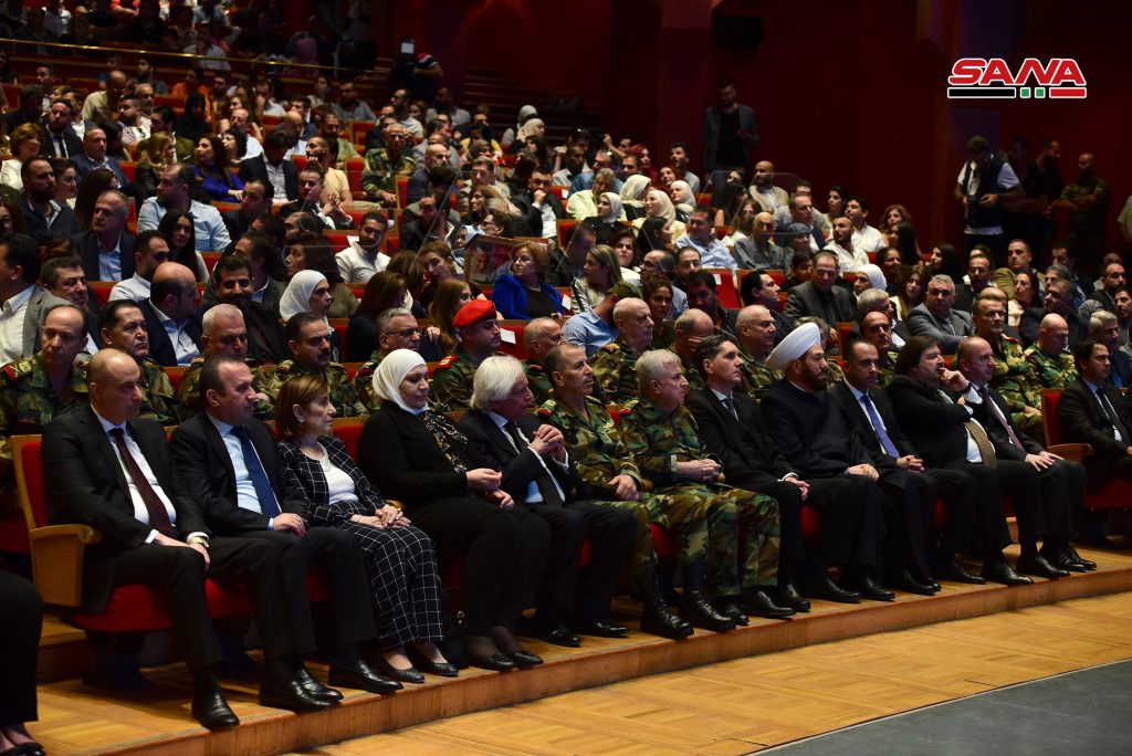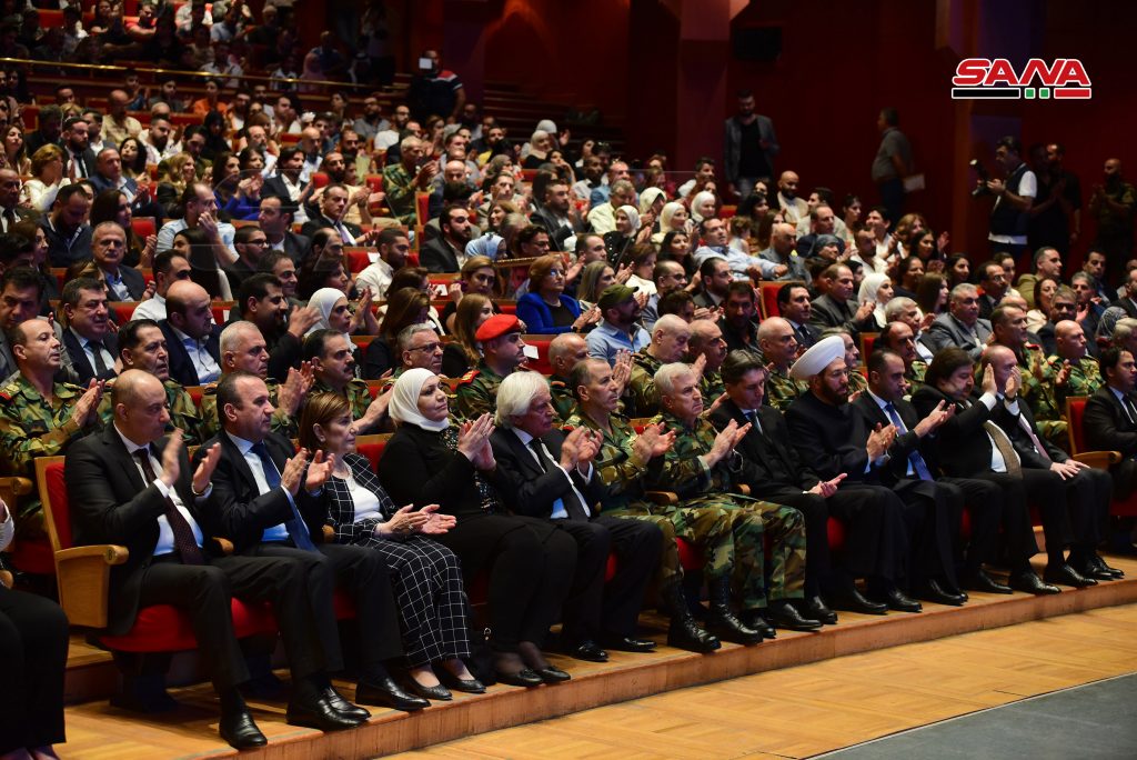 وجاء الحفل الذي شكل استذكاراً لأبطال حرب تشرين التحريرية من رجال الجيش العربي السوري الذين حطموا أسطورة جيش العدو الذي ” لا يقهر” إلى أبطال الجيش اليوم الذين انتصروا على الإرهاب الأسود رسالة تحية للشعب السوري وبطولات جيشه الباسل وأمهات الشهداء اللواتي شكلن نموذجاً يحتذى بالإرادة والعزيمة.
