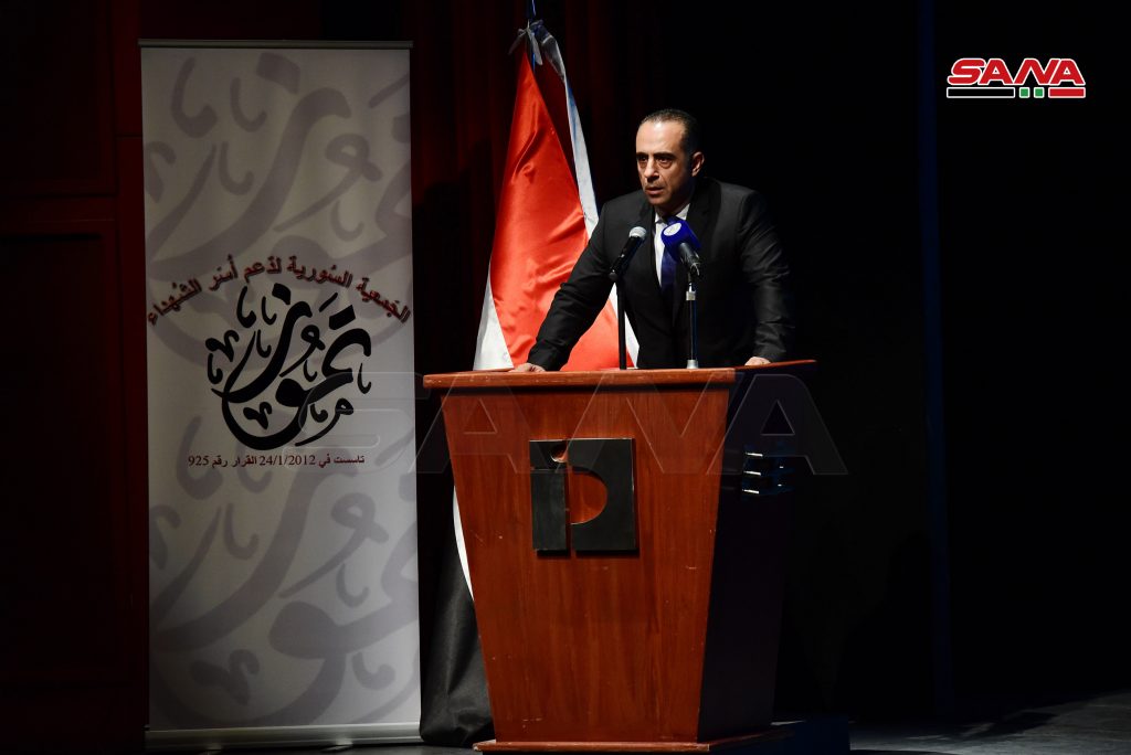بدوره أشار رئيس الجمعية الدكتور مازن حميدي إلى أن الحرب الإرهابية على سورية تتطلب تكاتف الجميع والعمل معا لدعم ذوي الشهداء الذين ضحوا ليبقى الوطن وهذا ما تعمل عليه الجمعية موضحاً أن فيلم جبال الشمس الذي تم إنتاجه بالشراكة مع وزارة الثقافة يحمل في طياته رسالة عن صمود الأم السورية وأمهات الشهداء الذين بفضلهن كان هناك أبطالاً دافعوا عن الوطن.