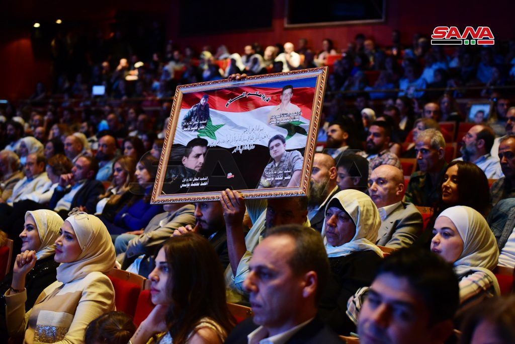 تزامناً مع الذكرى السادسة والأربعين لحرب تشرين التحريرية أقامت الجمعية السورية لدعم أسر الشهداء “تموز” حفلاً تكريمياً لـ500 عائلة شهيد من حماة الوطن رجال الجيش العربي السوري في محافظة دمشق وذلك في دار الأسد للثقافة والفنون .