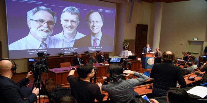 ووفقاً لرويترز أعلنت جمعية نوبل في معهد كارولينسكا بالسويد في بيان اليوم فوز الأمريكيين وليام كايلين وجريج سيمينزا والبريطاني بيتر راتكليف بالجائزة موضحة أن أبحاثهم وضعت الأساس لفهم كيف تؤثر مستويات الأوكسجين على الأيض الخلوي والوظائف الفسيولوجية.