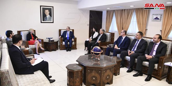 بحث الدكتور فيصل المقداد نائب وزير الخارجية والمغتربين ظهر اليوم مع مديرة خدمة الأمم المتحدة لنزع الألغام أغنس مركايلو الجوانب المتعلقة بعمل المنظمة في سورية.