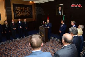وفي كلمة مماثلة أكد نائب وزير الخارجية والمغتربين الدكتور فيصل المقداد عمق العلاقات الأخوية بين البلدين ودعمها ووقوفهما الدائم معا لافتا إلى اتساع آفاق التعاون والعمل المشترك لتعزيز العلاقات والتعاون المشترك.