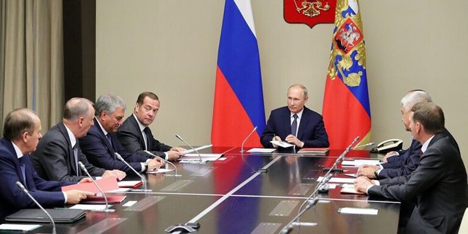 بحث الرئيس الروسي فلاديمير بوتين مع أعضاء مجلس الأمن القومي الروسي آخر تطورات الأوضاع في سورية وضرورة تفادي أي أعمال تهدد حل الأزمة فيها.