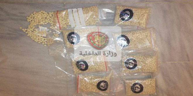 ضبط فرع مكافحة المخدرات في دمشق ثمانية آلاف حبة مخدرة من نوع الكبتاغون في سيارة شاحنة مركونة بكراج في بلدة صيدنايا بريف دمشق.