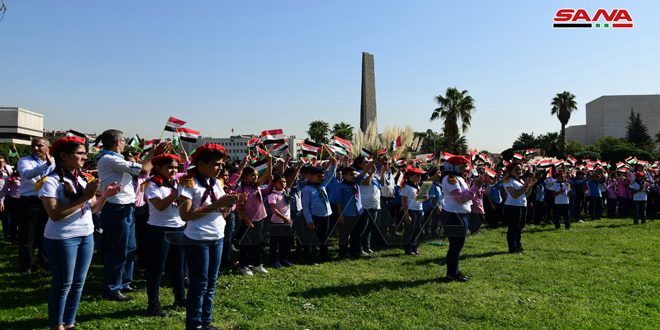 أطفال طلائع البعث يرفعون علم سورية في عدة ساحات بذكرى حرب تشرين