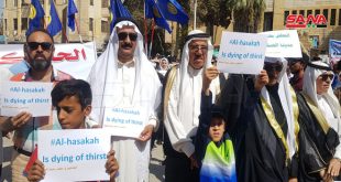 وقفة احتجاجية لأهالي الحسكة تنديداً بجريمة المحتل التركي وإرهابييه قطع المياه لأكثر من شهرين