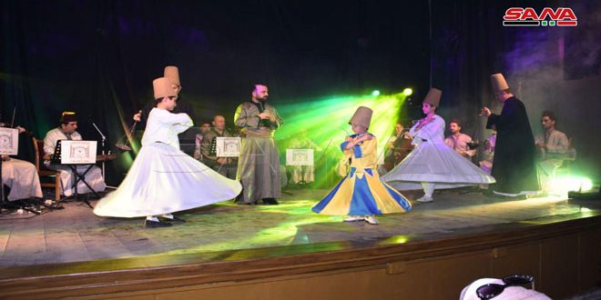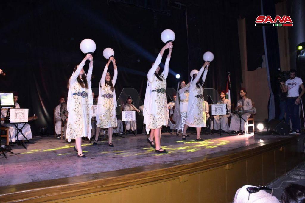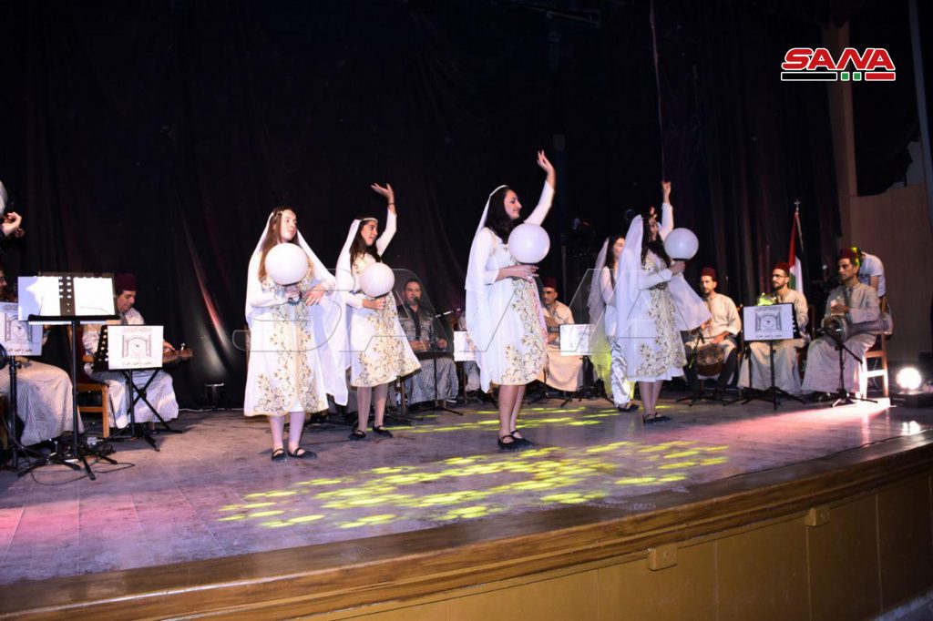 ضمن احتفالية حلب عاصمة الثقافة السورية أقيم اليوم حفل فني تراثي لفرقة بيت الفنون للتراث تضمن أغاني طربية وقدوداً وموشحات أندلسية من التراث الحلبي إضافة إلى رقصات السماح والمولوية ورقصة الدراويش على مسرح دار الكتب الوطنية.