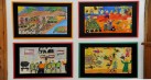 ومحمد مصطفى وسيدرا سنكري 13 و12 سنة أخوان شاركا بلوحات تعبر عن البيئة الشامية فهذه للحارة القديمة وبائع السوس وتلك اللوحات للدبكات الشعبية والرقصات الفلكلورية.