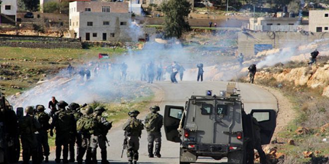 أصيب فلسطينيان بجروح والعشرات بحالات اختناق اليوم جراء قمع قوات الاحتلال الإسرائيلي مظاهرة في بلدة ترمسعيا شمال مدينة رام الله بالضفة الغربية.