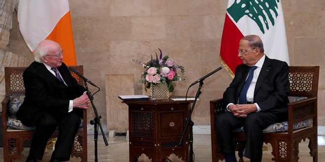 وأشار عون إلى الاتفاق بين لبنان وإيرلندا على تفعيل العلاقات الثنائية على مختلف الصعد وتطوير آليات التعاون بين البلدين ولا سيما في المحافل الدولية بما يخدم مصالحهما المشتركة.