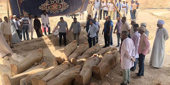 عرضت مصر اليوم اكتشافا نادرا يضم 30 تابوتا خشبيا ملونا ظلت محتفظة بحالها عثر عليها في منطقة وادي الملوك الغنية بالآثار الفرعونية في الأقصر جنوب البلاد.