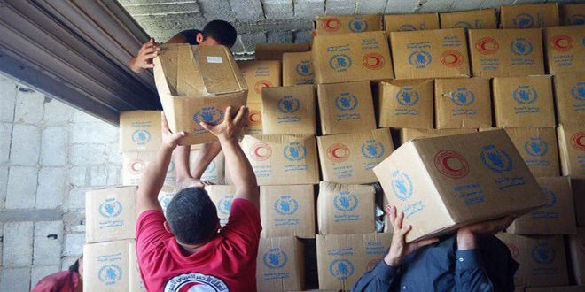 واستكمل فرع الهلال الأحمر العربي السوري في السابع عشر من الشهر الجاري إيصال 4500 سلة غذائية ومثلها من الطحين إلى الأهالي في بلدتي الطيبة وصيدا بريف درعا الشرقي.
