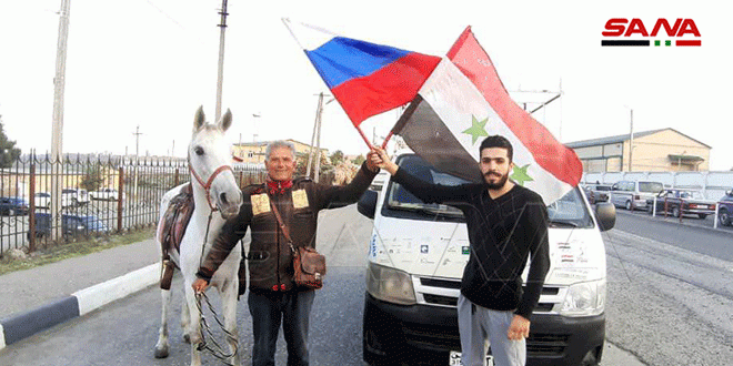 تابع الرحالة السوري الفارس عدنان عزام رحلته من سورية مرورا بالعراق وإيران ووصل على صهوة جواده العربي إلى الأراضي الروسية بعد أن عبر الحدود بين أذربيجان وجمهورية داغستان الروسية.
