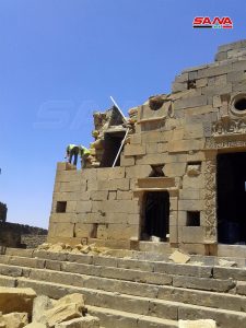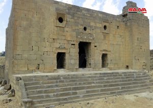 شارفت أعمال تأهيل وترميم معبد الاسكندر ذي القرنين في بلدة المتاعية بريف درعا على الانتهاء.